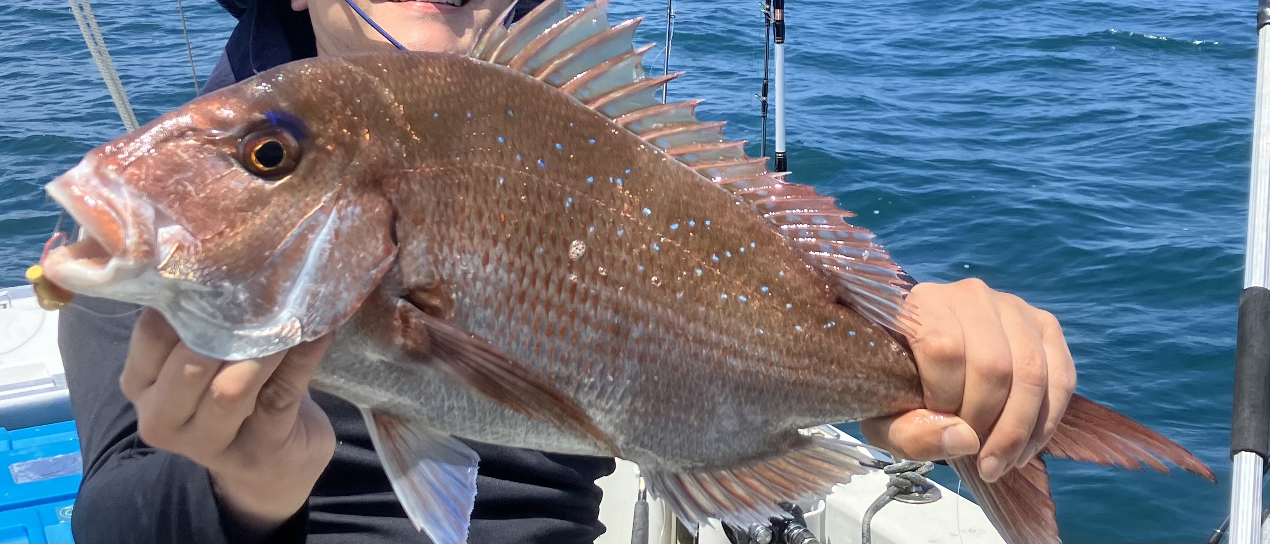 先日、日本海に釣りに行きましたところ、当院のロゴマークの『真鯛』が釣れました。