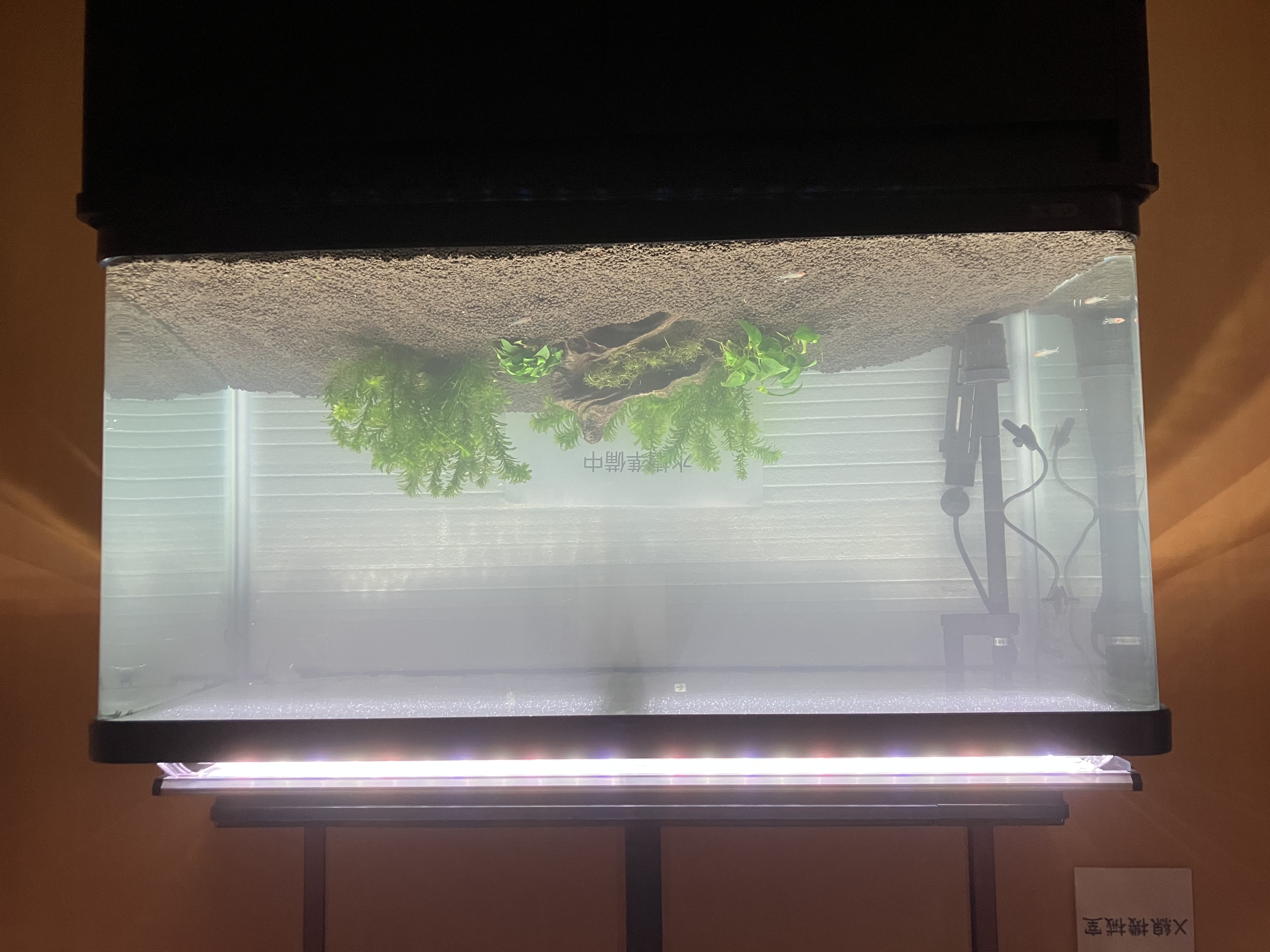 熱帯魚水槽の準備を進めてますが、ついに水槽の中に魚と水草が入りました。