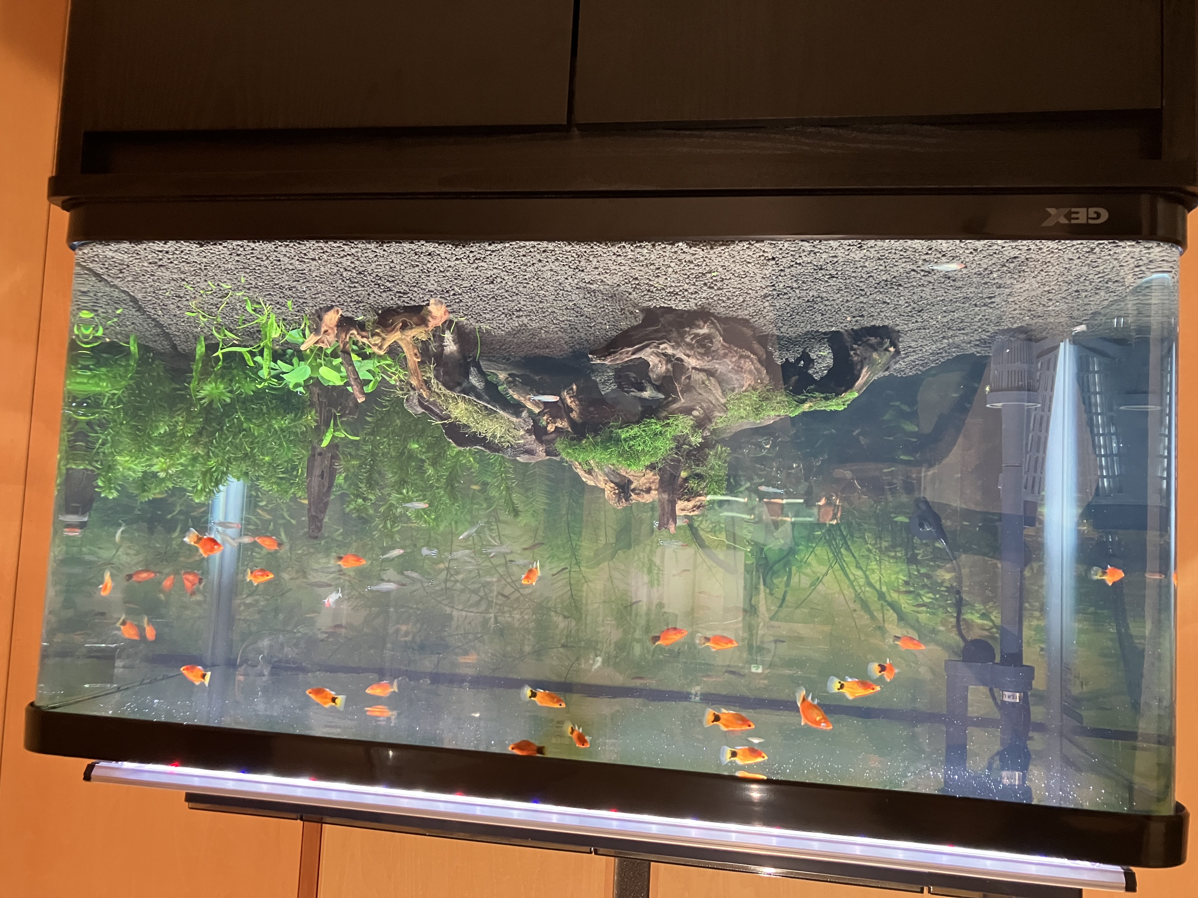 また、当院の水槽アドバイザーのT氏が流木、水草などに魔法をかけていただきかなりランクアップしました。