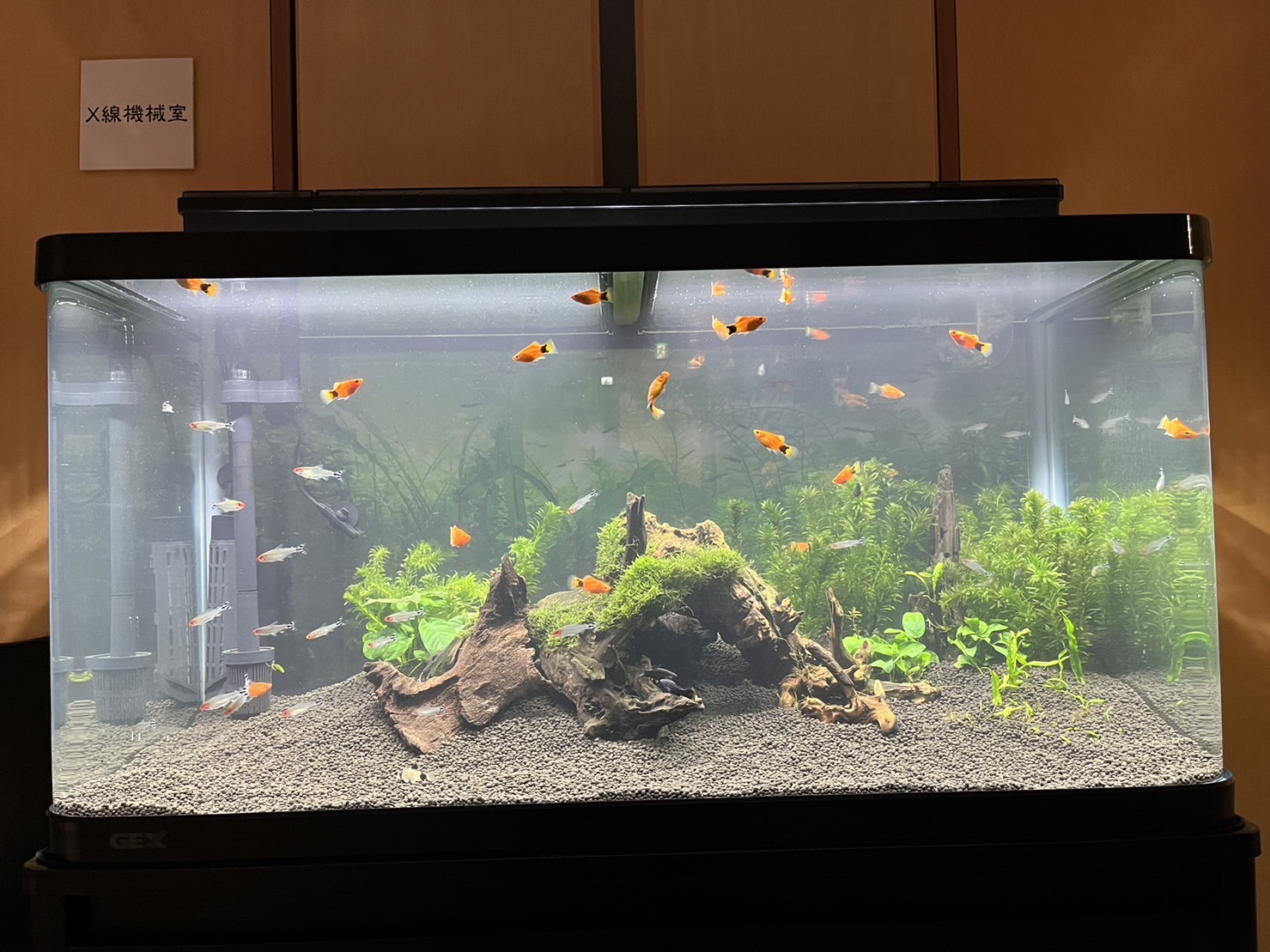 暑い夏もそろそろ終わりますでしょうか?夏の終わりは感傷的になりますね。さて、クリニックの水槽ですが新たにブラックモーリーとコリドラスパンダが加わりました。水草、流木もよい感じです。涼しげな水槽で、導入してよかったなぁとしみじみ感じています。