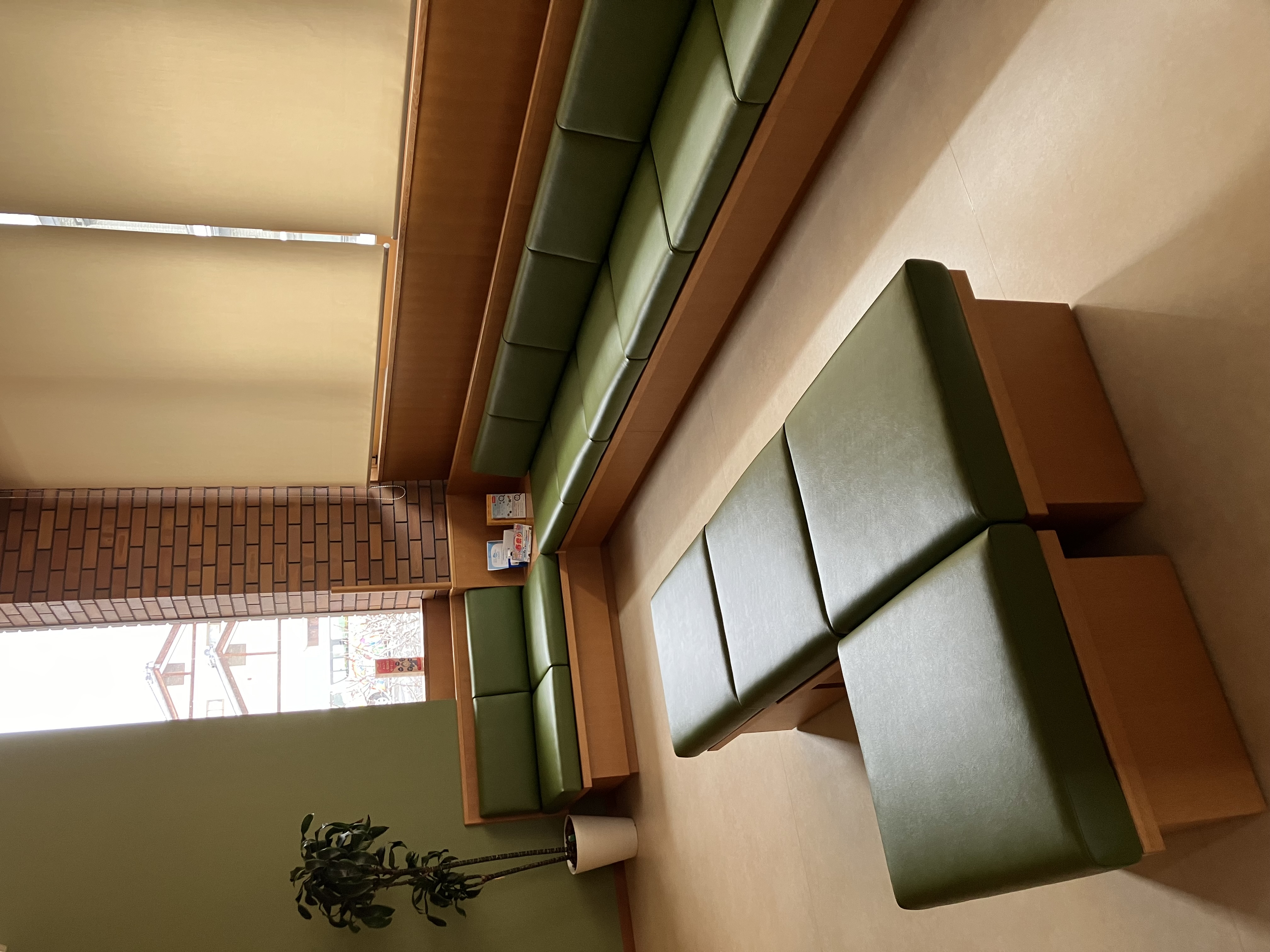 お待たせいたしました。ヘタっており座り心地の悪かった待合室の椅子のクッションとカバーを新しくさせていただきました。色も濃いグリーンで統一しました。座り心地も良くなりました。業者さんのプロの仕事に感謝感激です・・・・。